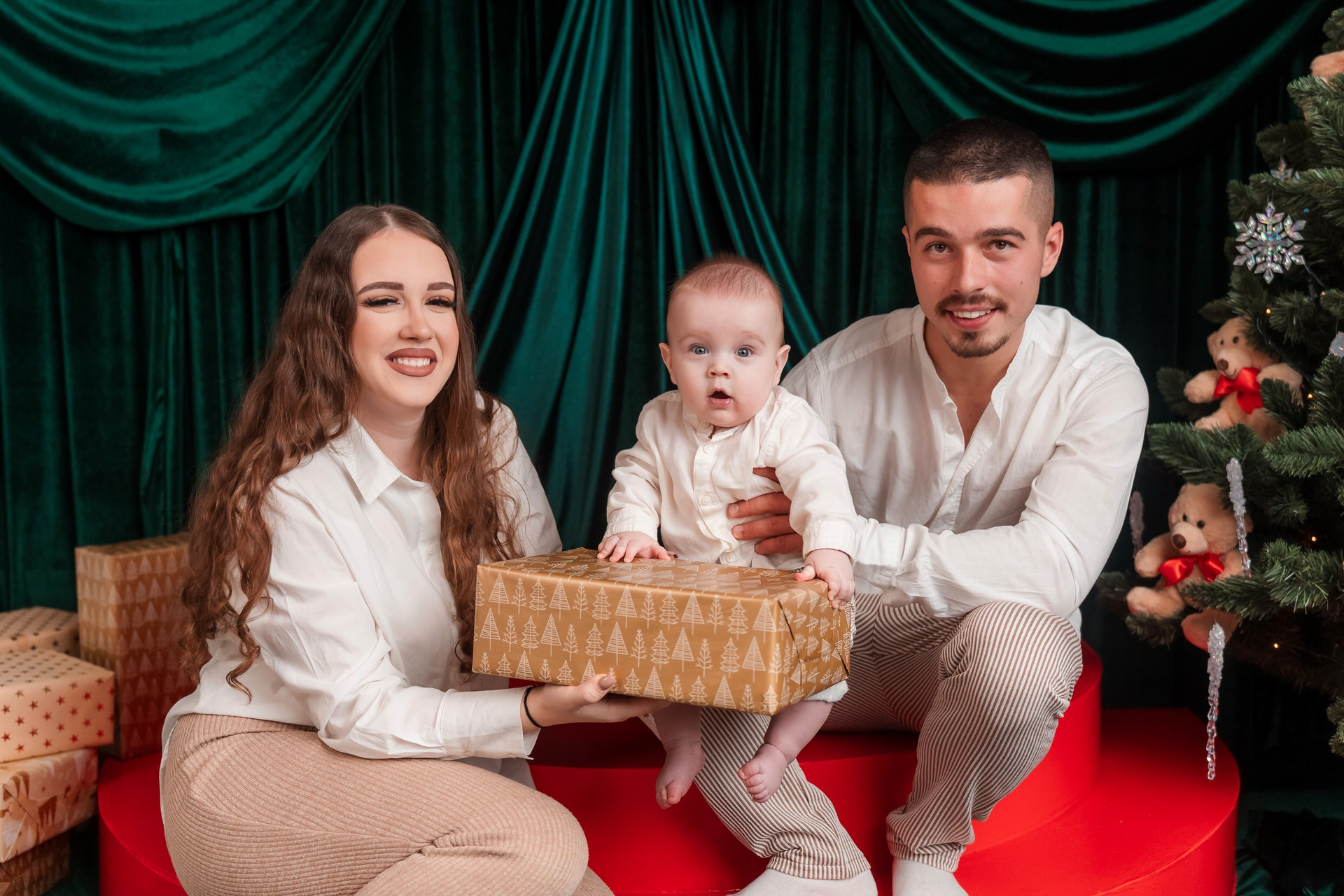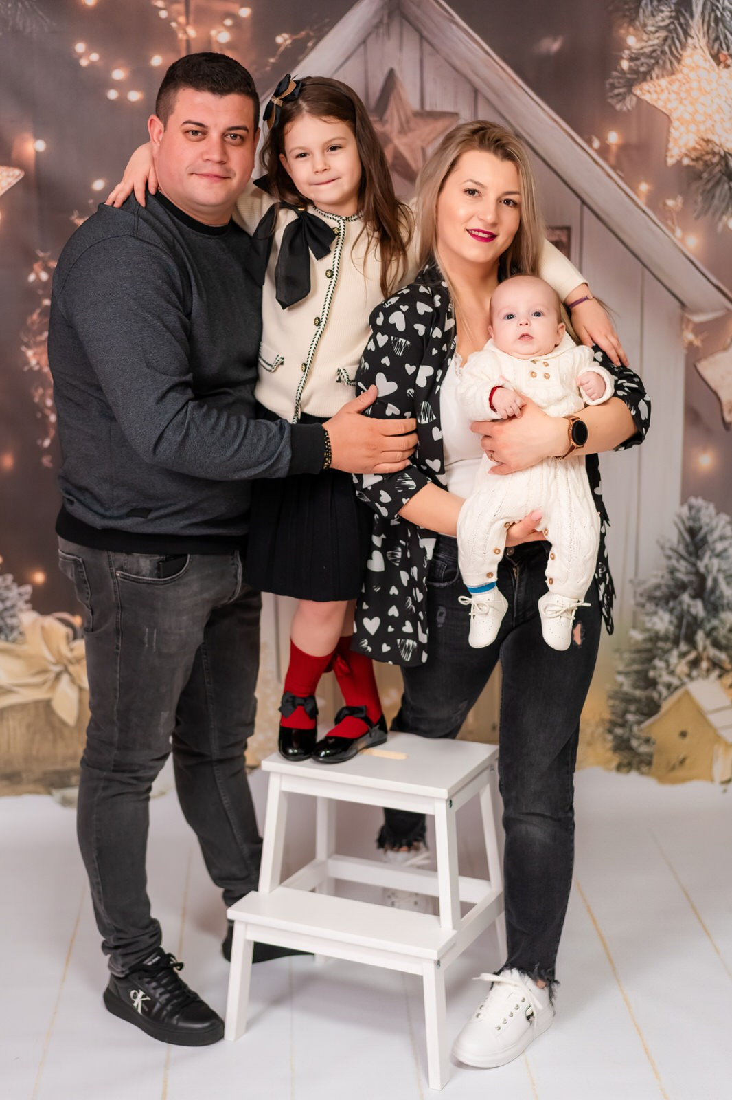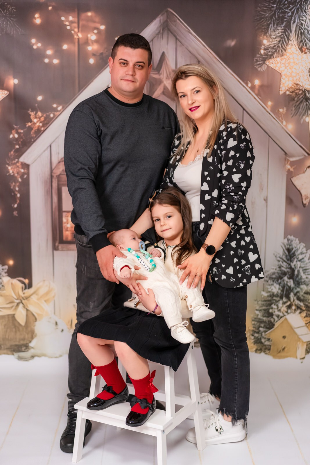 Vă reamintim că studioul nostru nu deține haine pentru ședințele foto de Crăciun, așa că vă rugăm să veniți pregătiți cu propriile ținute în funcție de preferințele și gusturile dumneavoastră.